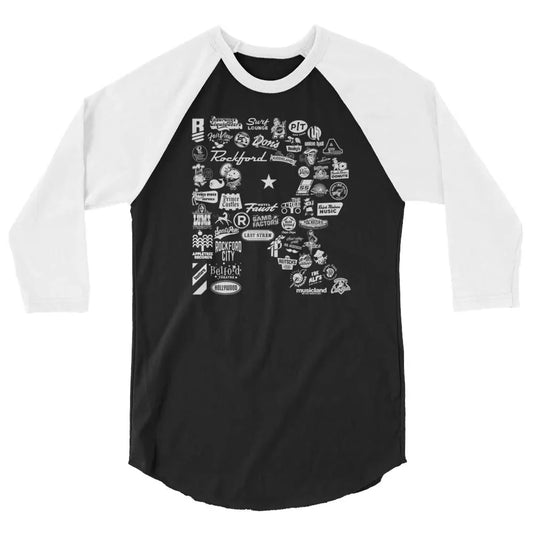 R is for Rockford Unisex Retro 3/4 sleeve raglan baseball tee