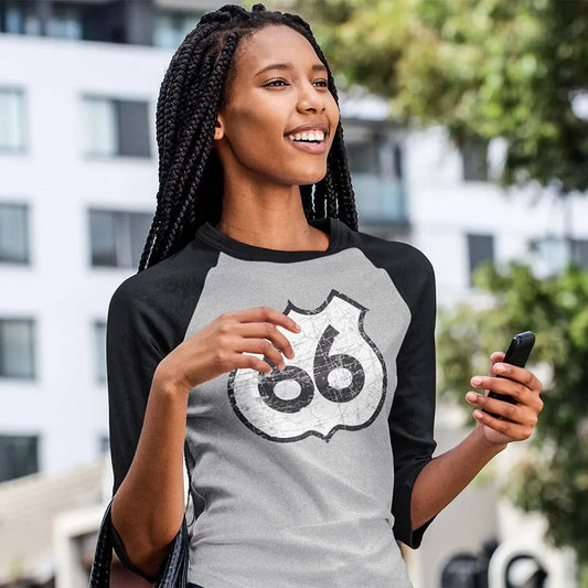 Route 66 Highway unisex 3/4 sleeve raglan baseball tee